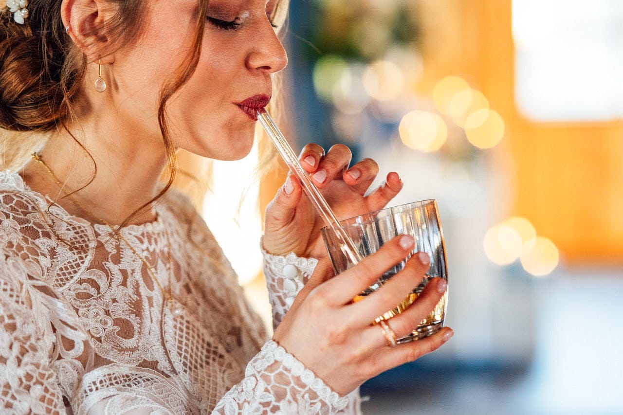 Mit dem klassischen 20cm Strohhalm lässt es sich aus fast jedem Glas schlürfen.