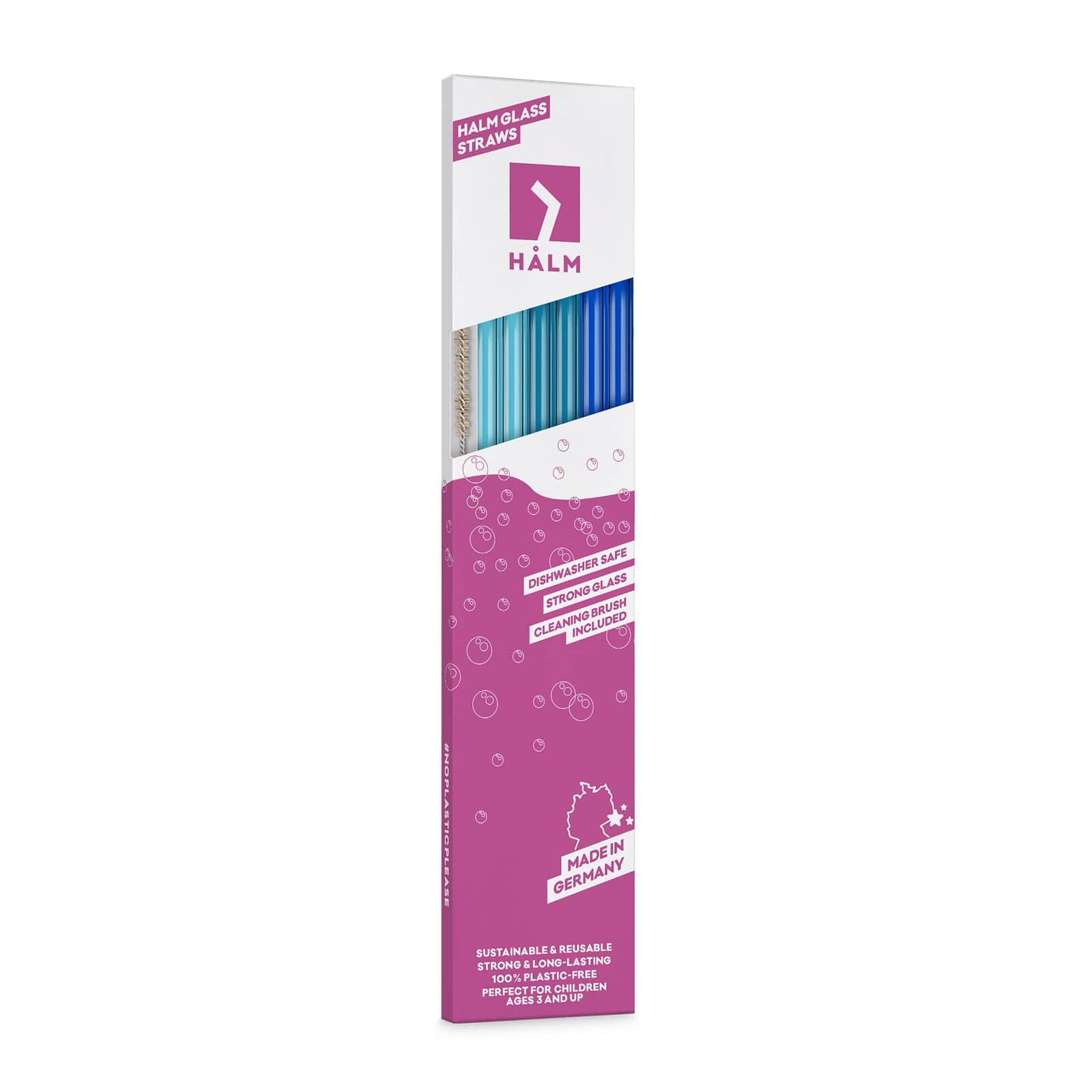 HALM Trinkhalme sind die stabilsten Glas-strohalme weltweit. Doppelte Qualitätskontrolle, perfektes Verhältnis von Innen- & Außen-durchmesser und eine abgerundete Öffnung ermöglichen ein absolut sicheres Trinkerlebnis. Da HALM Strohhalme frei von Giftstoffen, hitze- und kältebeständig sowie langlebig sind, eigenen sie sich auch perfekt für Kinder ab 3 Jahren.