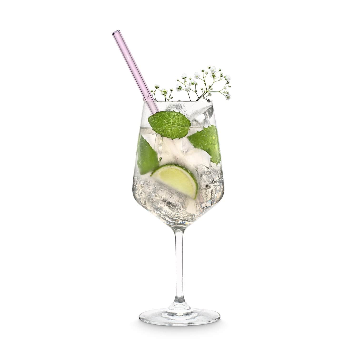 Rosa Glasstrohhalme 6x 20cm Gerade