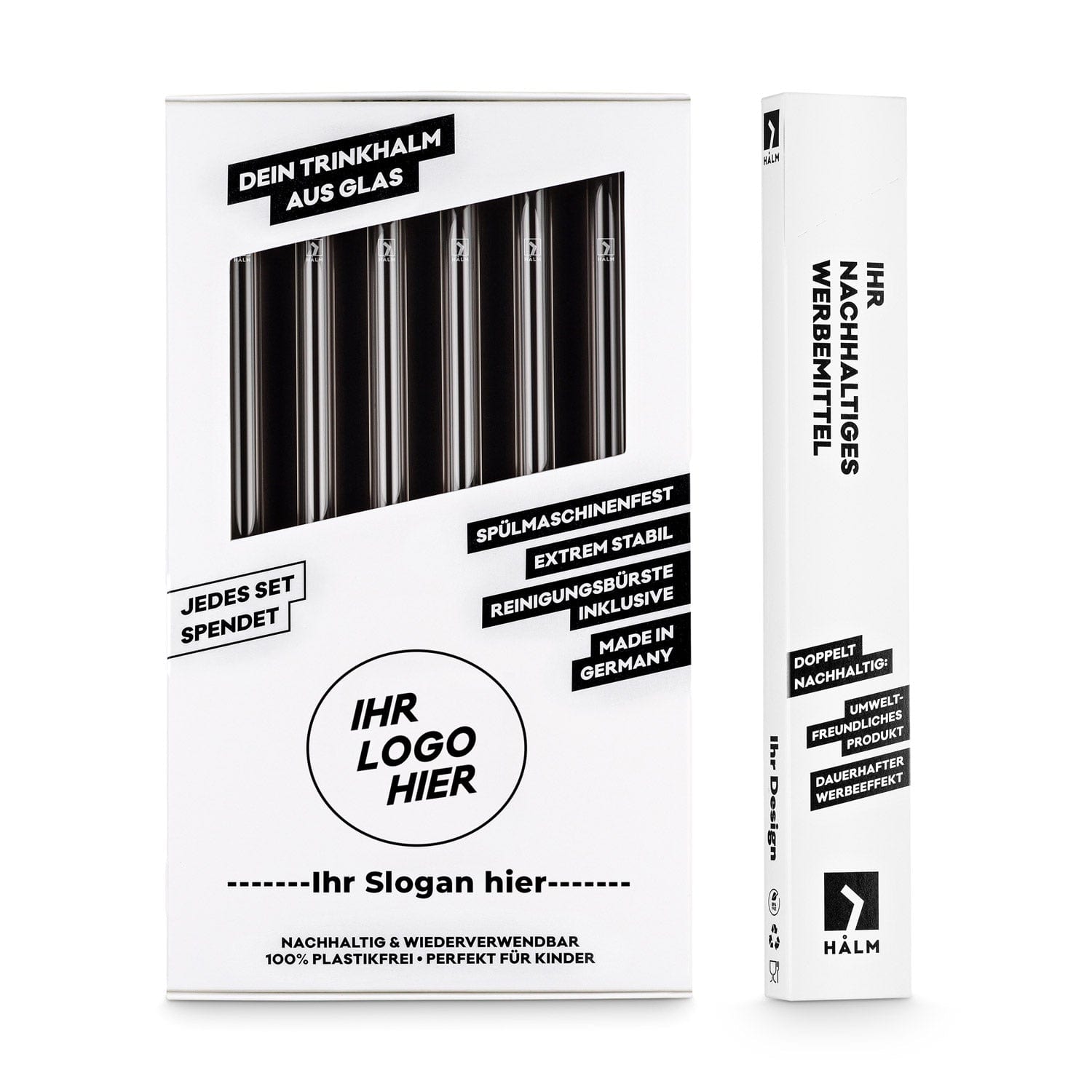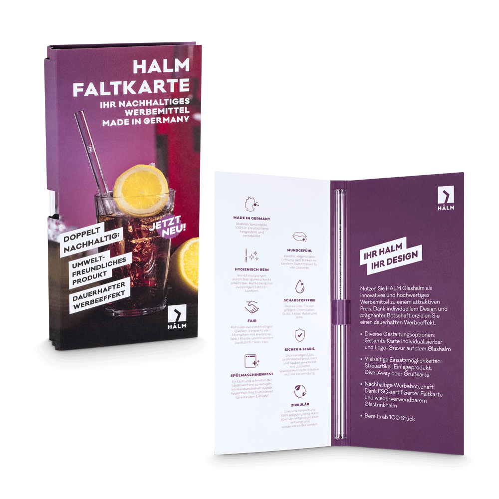 Con miles de proyectos en el mercado de materiales publicitarios, HALM es líder del mercado - ¡Las pajitas de vidrio originales de Alemania!
