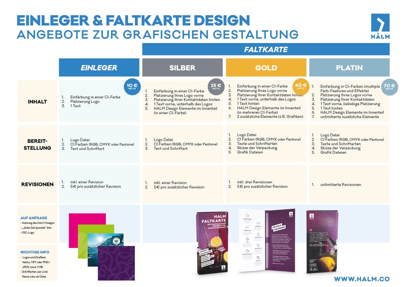 Promocione su marca con la tarjeta plegable personalizada. Un medio publicitario innovador y sostenible, perfecto como obsequio o tarjeta de regalo para sus clientes. ¡Dé a su carta de bebidas e información del programa la mejora perfecta con la tarjeta plegable HALM!
